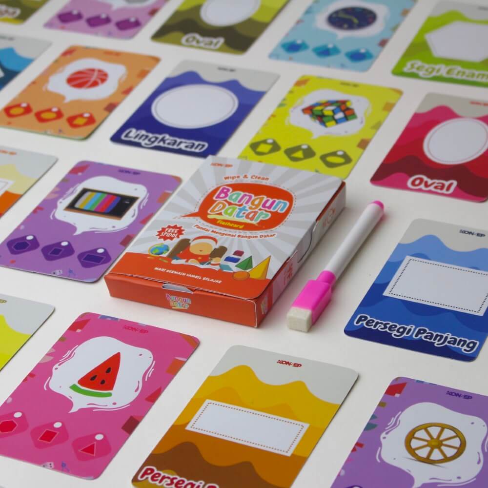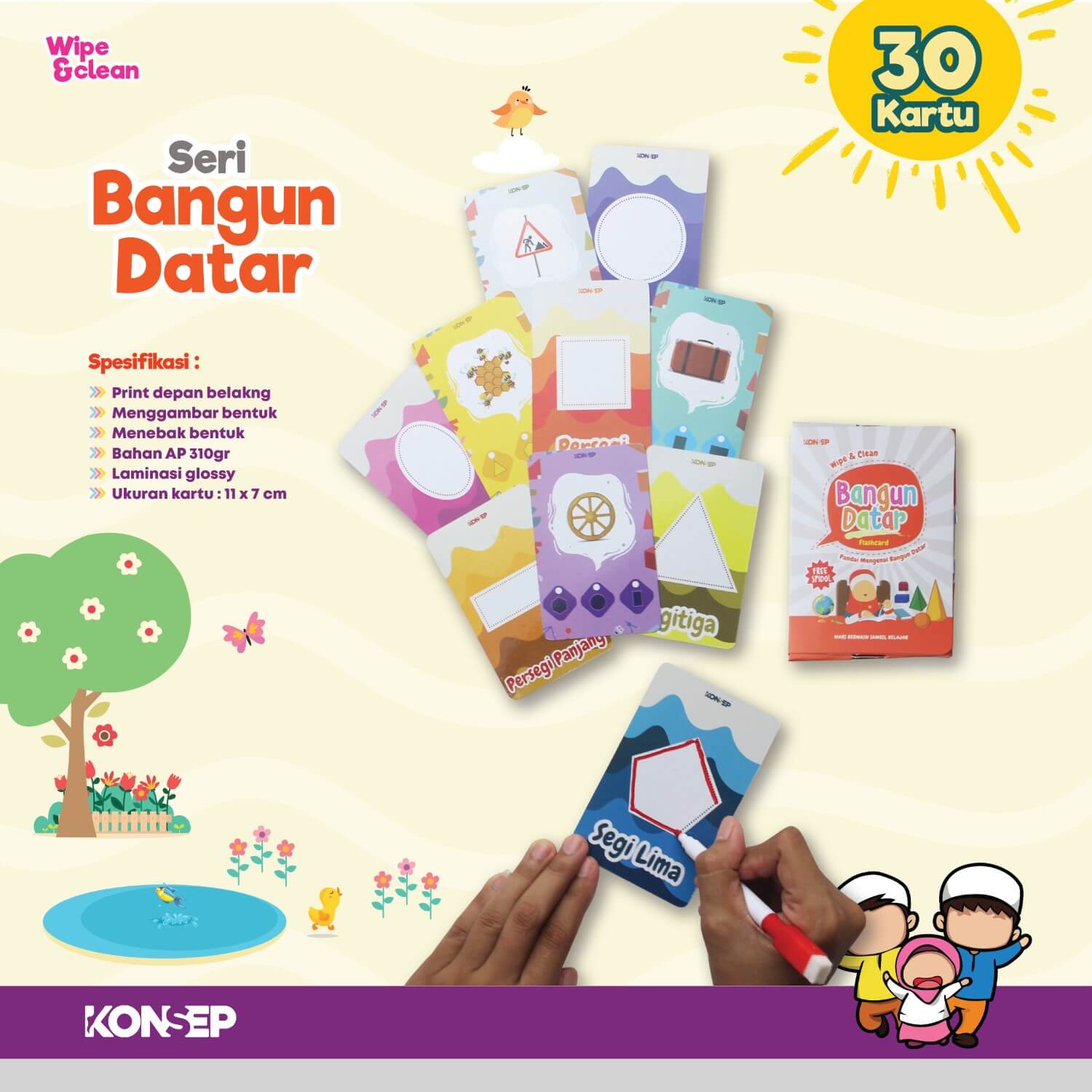 Flash Card Wipe & Clean Bangun Datar - Kartu Edukasi Belajar Anak Bisa Ditulis & Dihapus - Konsep Studio Original